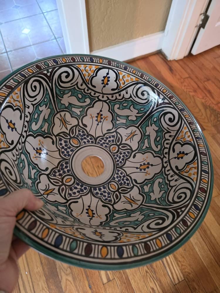 Keywords: Moroccan Tile Sink, Andalusian Bathroom Style, Interior Design, Handmade Pottery Washbasin, Antique Sink, Home Decor, Middle Age Porceline,Real Traditional Tile, Indoor Design, Renovation ideas, Marble Design, Luxury Sink, Decor Inspiration, sink vanity, sink bowl, sink vessel, pottery handmade, pottery handmade sink, pottery handmade large sink, pottery handmade large sink,**Please note for the no US customers : you may pay the custom fees when the product arrives we suggest you check that first.