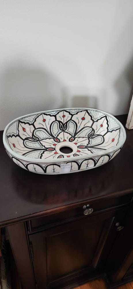 Keywords: Moroccan Tile Sink, Andalusian Bathroom Style, Interior Design, Handmade Pottery Washbasin, Antique Sink, Home Decor, Middle Age Porceline,Real Traditional Tile, Indoor Design, Renovation ideas, Marble Design, Luxury Sink, Decor Inspiration, sink vanity, sink bowl, sink vessel, pottery handmade, pottery handmade sink, pottery handmade large sink, pottery handmade large sink,**Please note for the no US customers : you may pay the custom fees when the product arrives we suggest you check that first.